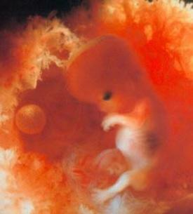 … Further refinements are noted in the third month. The fingernails appear. The child’s face becomes much prettier. His eyes, previously far apart, now move closer together. The eyelids close over the eyes. Sexual differentiation is apparent in both internal and external sex organs and primitive eggs and sperm are formed. The vocal cords are completed. In the absence of air they cannot produce sound; the child cannot cry aloud until birth, although he is capable of crying long before.”